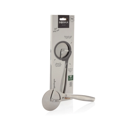 Cut your pizza into perfect slices with the Pizza Wheel Copenhagen, from the brand BOSKA – a B Corporation certified company. Made entirely of stainless steel, this pizza wheel is dishwasher- and refrigerator-safe. The tool is lightweight yet very sturdy, and it won't wobble when cutting. Backed by a lifetime guarantee, what more could you want?