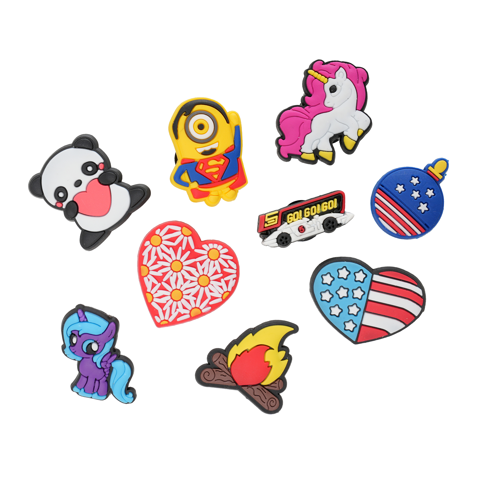 Custom shoe charms in any shape, with 3 colours included. Supplied on a printed backing card if required at an additional charge. A fun and funky giveaway item. Fully bespoke and Pantone® matched.