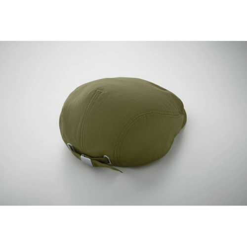 Newsboy flat cap in 235 gr/m² twill cotton with metal buckle closure.