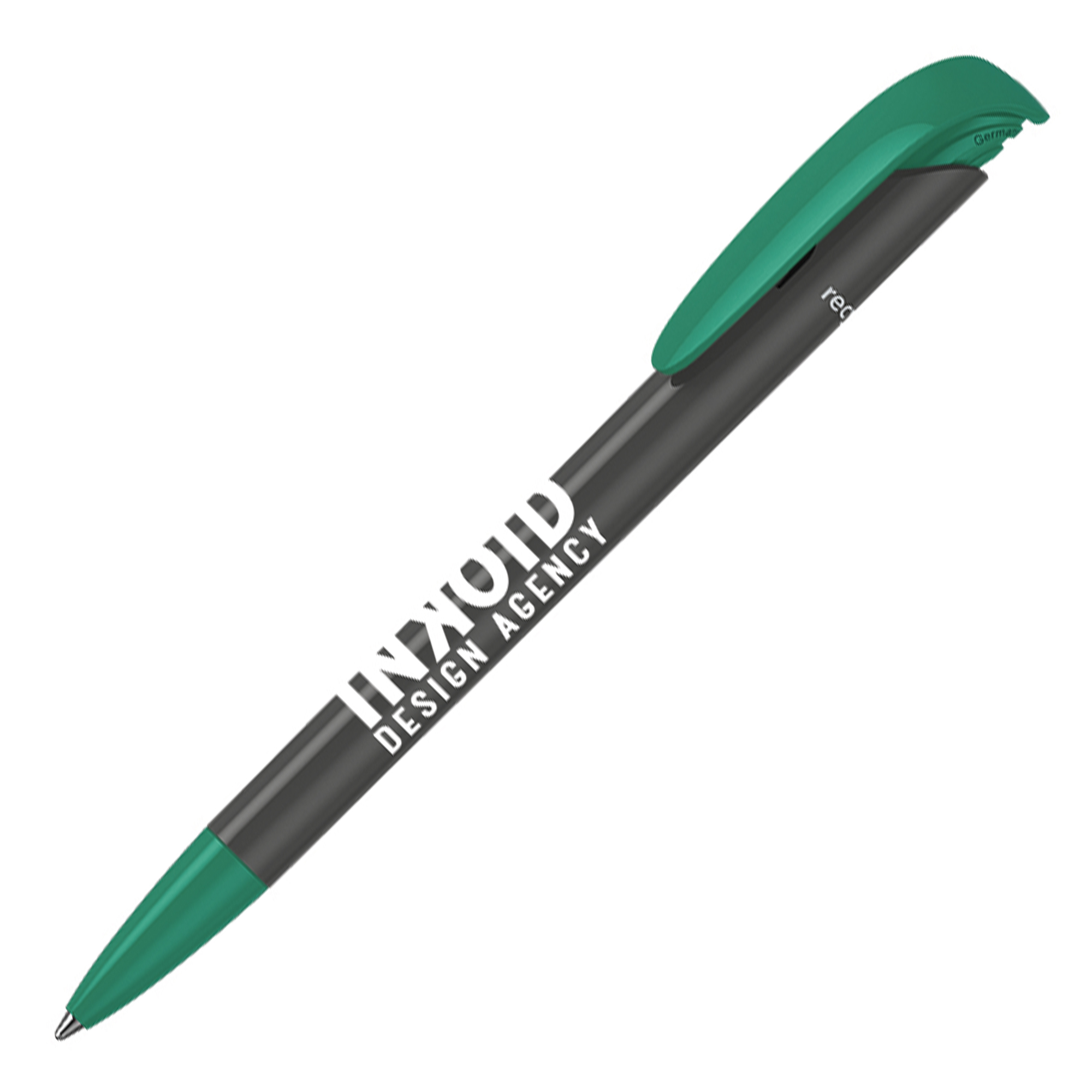 A popular push action ball pen from Klio-Eterna in Germany. This pen is made up of 100% recycled ABS plastic. This product comes with a recycled Silktech refill with a writing length of 3000m. All parts of the product can be customised between the 14 colours available. MOQ 500pcs, 4 weeks lead time. Pantone matching available from 3000pcs. Ink Colour: Black or Blue
