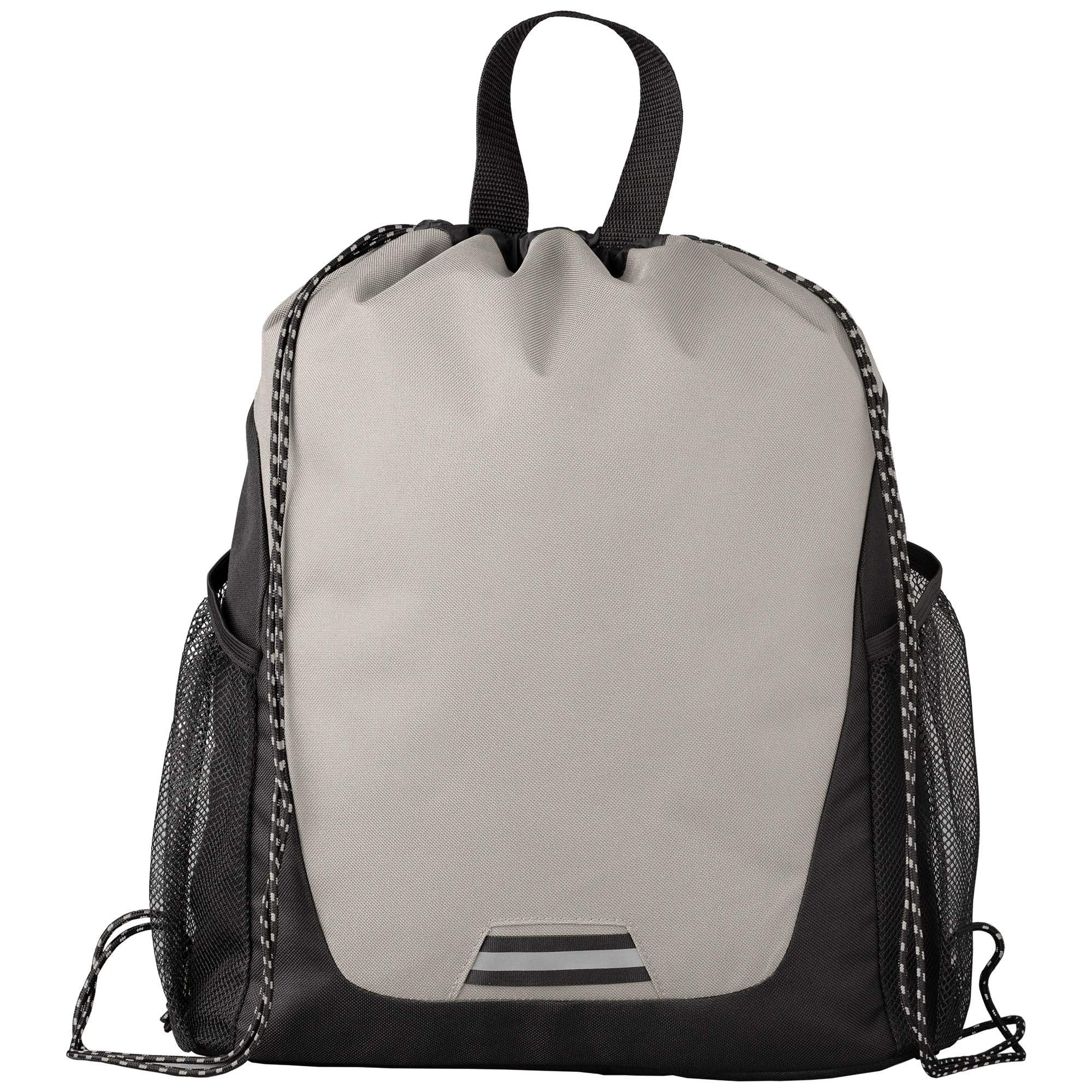 The Jotun Recycled Polyester Pocketed Drawstring Bag is a practical and durable choice for everyday use. Crafted from rPET 600D polyester and rPET 210D polyester, this bag is built to last. It features a reflective strap at the bottom for added visibility and a main compartment that securely closes with a black rope. Designed for convenience, it includes two side mesh pockets for easy access to smaller items and a webbing top handle for comfortable carrying. The inside label features a QR code for the Digital Product Passport, allowing easy tracking of the bag’s details. A Jacquard material tag is sewn on the right side, displaying a leaf symbol and the words "recycled PET." With a 10L capacity and a maximum weight limit of 5 kgs, this versatile bag is ideal for daily use, outdoor activities, or casual shopping trips.