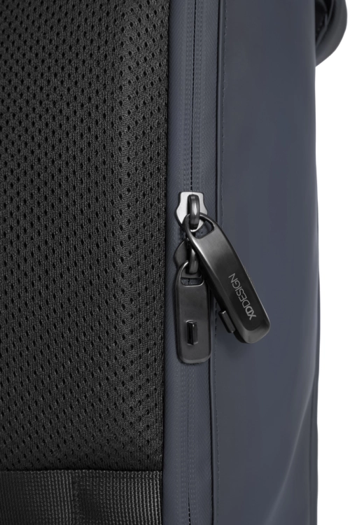 Experience versatile, all weather design and enhanced security with Urban backpack. Its unique L shaped wide opening main compartment,complete with an expandable section and ample space for a 16 inch laptop, offers effortless access to your essentials. The anti theft design, coupledwith a self locking metal zipper puller, ensures that your belongings remain safe. The addition of a rear pocket and a dedicated water bottle pocketbrings convenience to your daily adventures, making it the ideal companion for urban explorer. This backpack is not only water repellent, it's durable and stylish. Crafted with Aware ™traceable recycled polyester and finished with a soft touch PU coating, perfect for any occasion. 17% recycledcontent. Registered design®