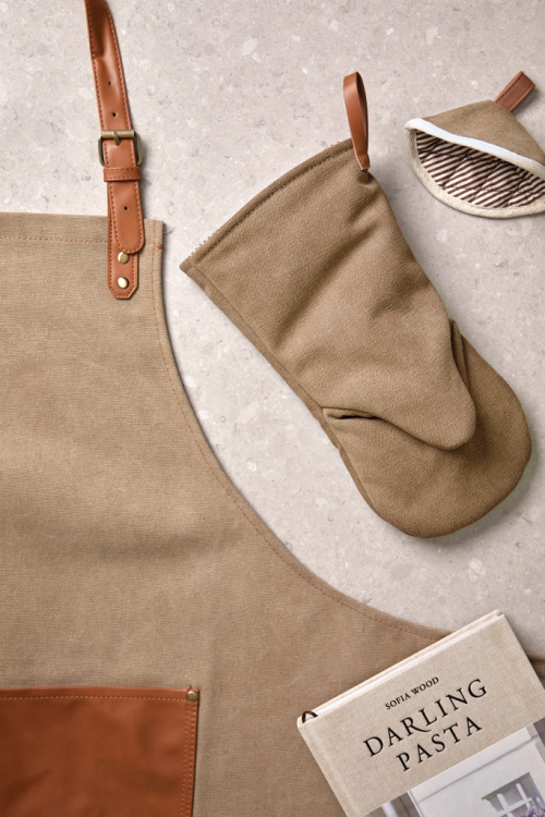 Practical and stylish oven glove made of cotton canvas. Generously padded to protect your hands when you're taking hot dishes from the kitchen to the table. You can hang the stylish oven glove up in your kitchen with the handy loop when not in use - ready to grab when you are about to take out a searing hot dish! Suitable for right and left handed users.