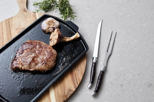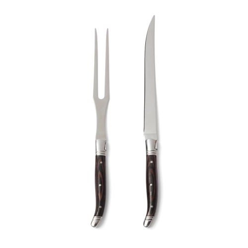 Trancher set with knife and fork in typical French-inspired bistro style. Black pakka wood handle and high-quality stainless steel blades. Packed in an exclusive gift box.