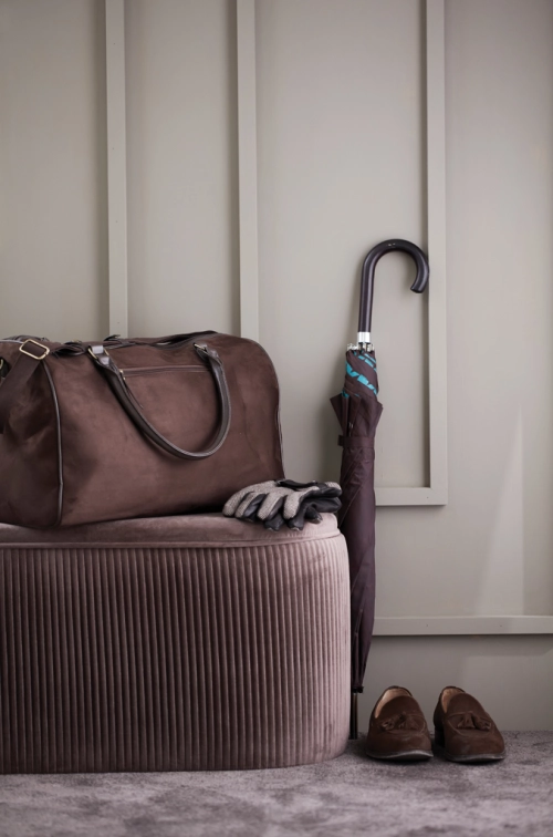 Spacious weekend bag that is perfect for shorter trips or excursions. The bag comes in a timeless and classic design in suede imitation and is decorated with brass details. A great and easy travel companion for the days when you are constantly on the go.