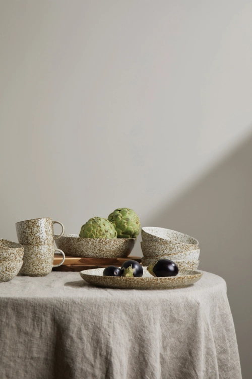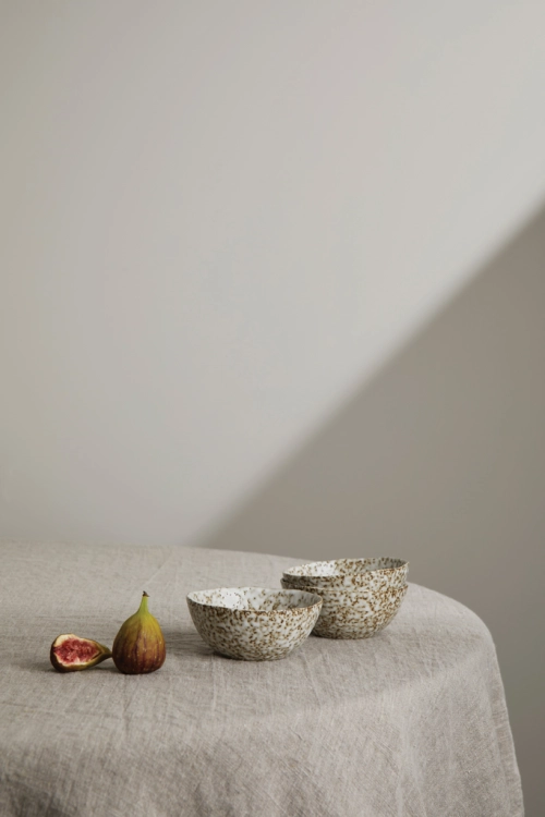 Three-piece stoneware bowl. With its unique, organic uneven shapes and hand-glazed finish, each piece is one-of-a-kind and sure to impress your guests. Crafted from durable stoneware, it is designed to last and withstand the wear and tear of daily use. These bowls are dishwasher-safe for easy cleaning and maintenance. Not suitable for use in the microwave or oven.