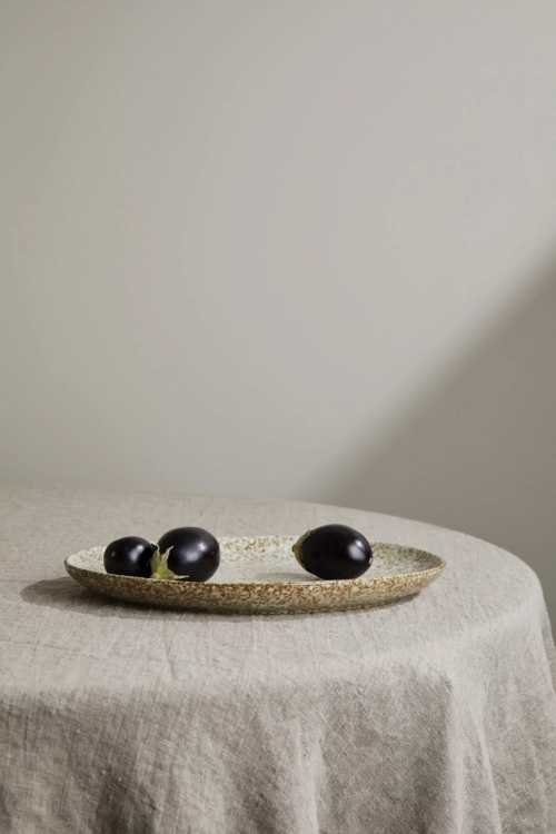 Stoneware serving plate, a must-have addition to any dining table. With its unique, organic uneven shapes and hand-glazed finish, each piece is one-of-a-kind and sure to impress your guests. Crafted from durable stoneware, it is designed to last and withstand the wear and tear of daily use. This serving plate is dishwasher-safe for easy cleaning and maintenance. Not suitable for use in the microwave or oven.